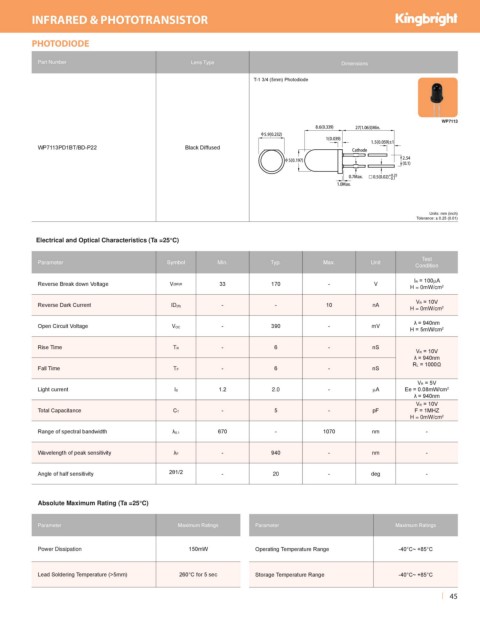 Lead Soldering Temperature (>5mm) 260°C for 5 sec Storage Temperature Range -40°C~ +85°C